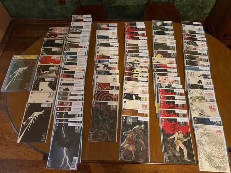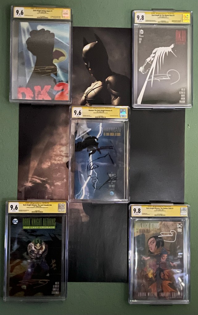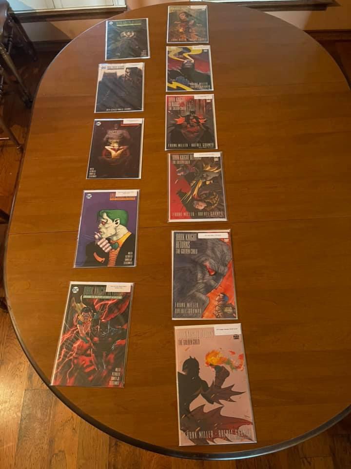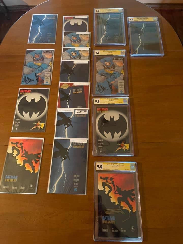 This is a complete collection of every single 1st print, 2nd print, 3rd print book and variant covers to; The Dark Knight Returns, DK2, DK3, The Dark Knight Returns: The Last Crusade, The Dark Knight Returns: Golden Child and Batman: Year One ungraded. I have also started the journey of now finding all these books autographed, graded and slabbed by CGC at a 9.6 or better.