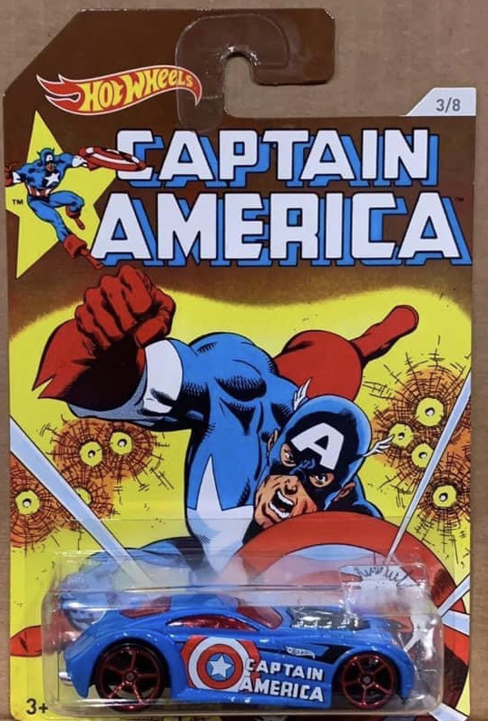 Hot Wheels 1/64th Scale 1/8 ” ‘40 Ford Coupe” (Captain America ’40s). Card stock is from the splash page of Captain America #1, March 1941. Cover Artist Joe Simon (un-opened)