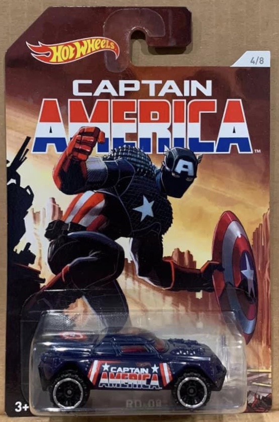 Hot Wheels 1/64th Scale 4/8 “RD 08” (Captain America ’00s). Card stock is from Vol. 7 #1. Cover artist John Romita Jr. (un-opened)
