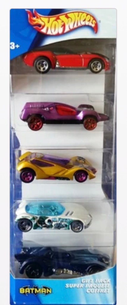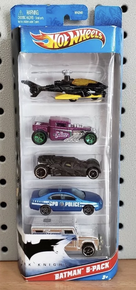 Hot Wheels 2011 Batman 1/64th 5-Pack. Based on the 2008 movie The Dark Knight from Batman (DC Comics). Below are the five vehicles that came in this 5-Pack. (NIP) appraised value $15.00