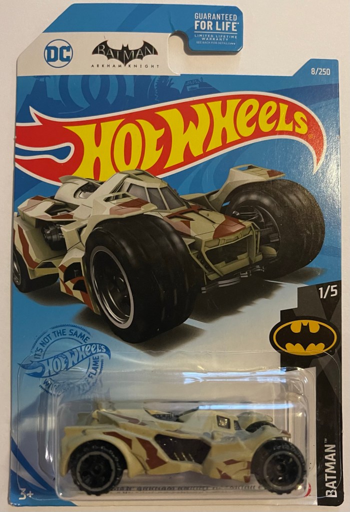 Hot Wheels 2020/21 Mainline 1/5, 1:64th Scale Camo “Arkham Knight” Batmobile, (NIP) appraised value $10.00