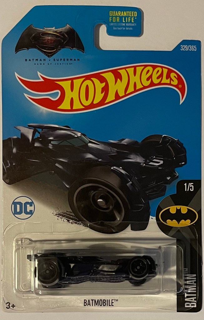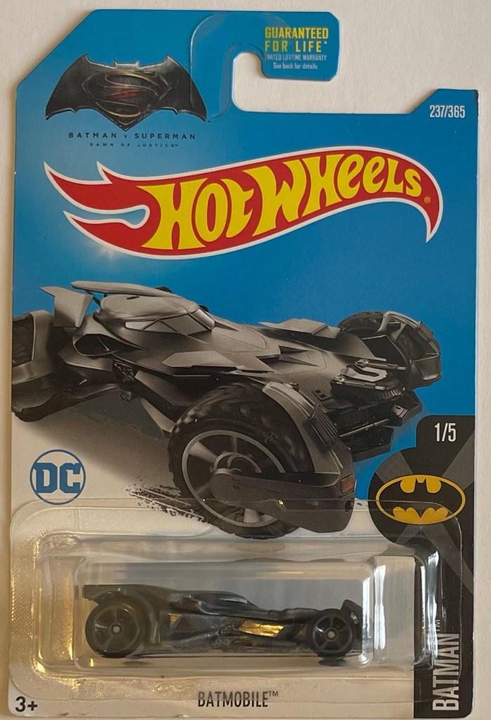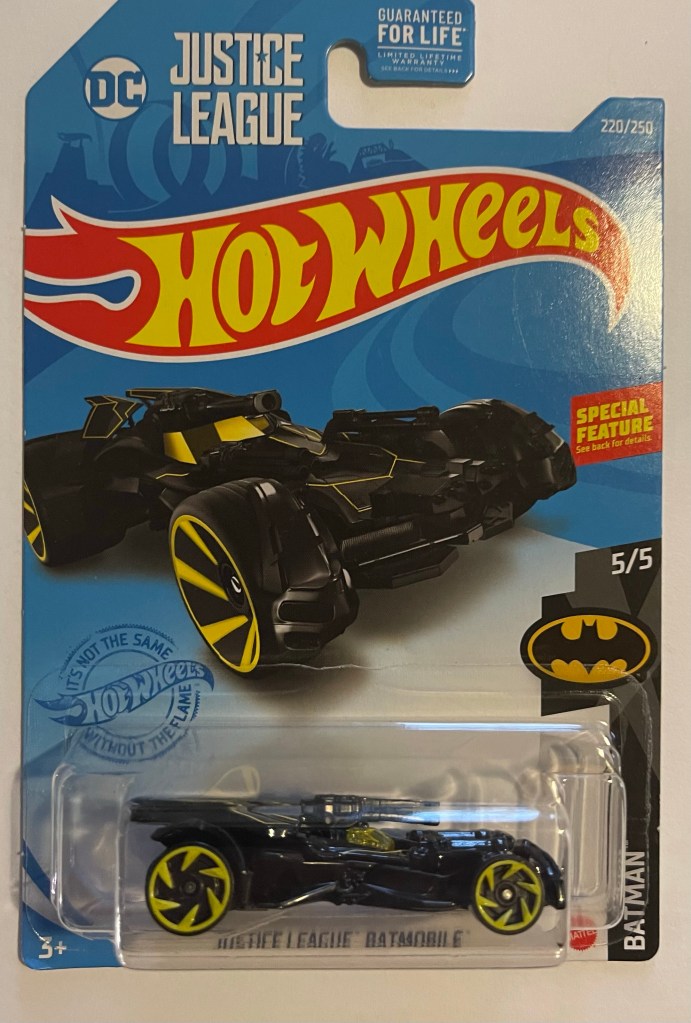 Hot Wheels 2020/21 Mainline 5/5, 1:64th Scale Metalflake Black Justice League Batmobile, (NIP) appraised value $10.00